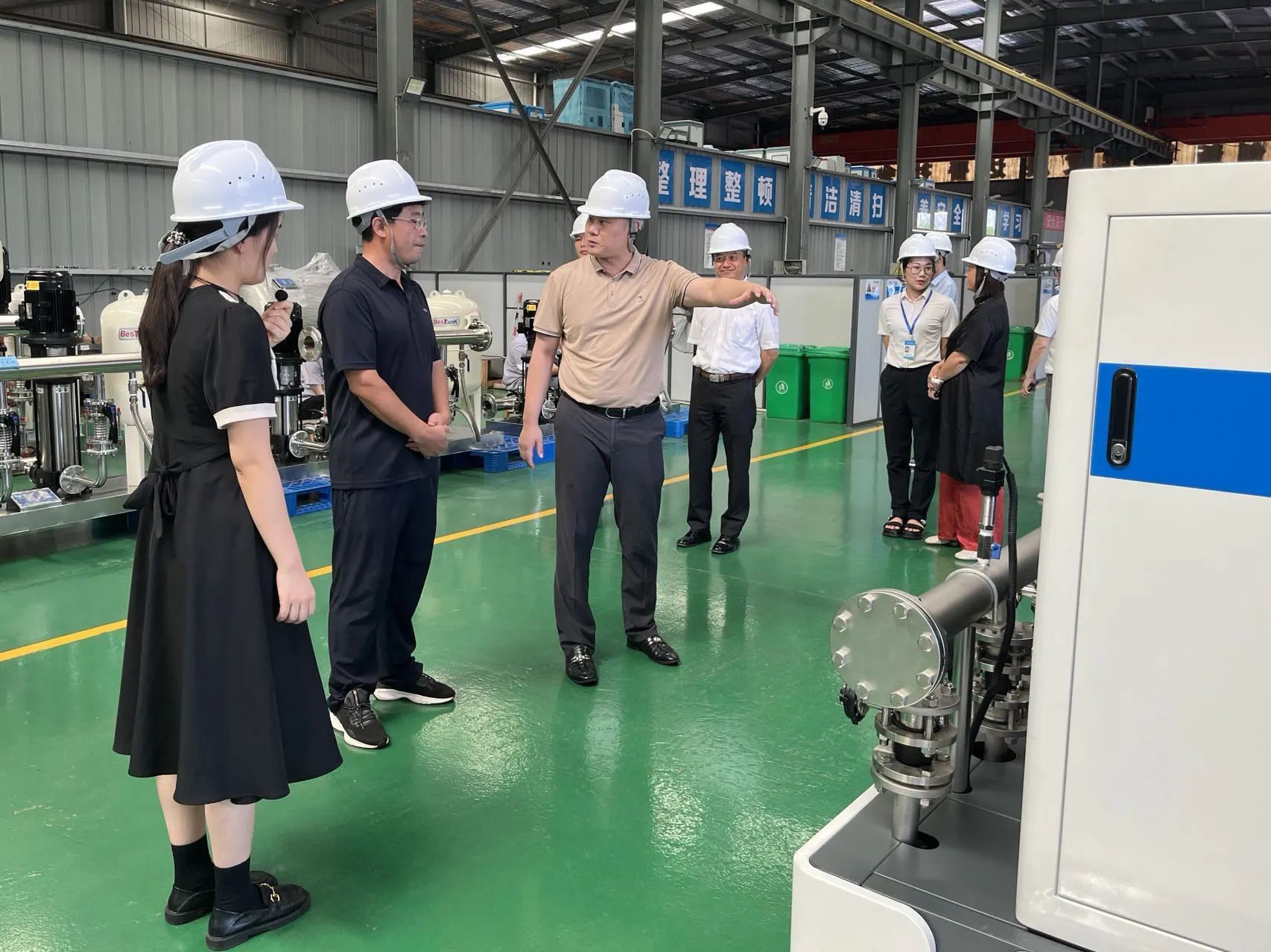 范總經(jīng)理一行的到來(lái),讓我司充滿了熱烈而友好的氛圍。他們懷揣著對(duì)水務(wù)行業(yè)發(fā)展的熱忱和對(duì)先進(jìn)經(jīng)驗(yàn)的渴望,踏入了我司的機(jī)械車(chē)間、電氣車(chē)間、展廳和會(huì)議室等區(qū)域。