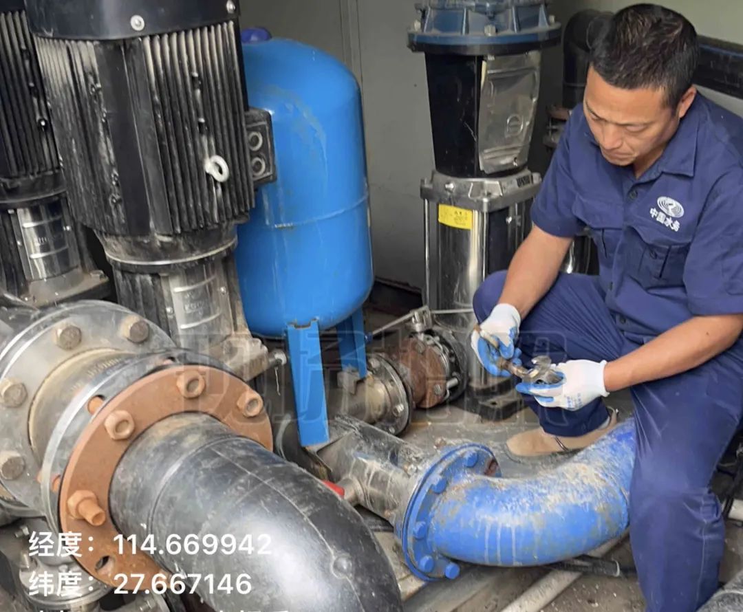 白社加壓站是一個二供設(shè)備改造項目,且項目較為特殊。5月1日,情潤公司運維中心同事們正準備休假,突然接到水司下達的工作任務(wù)——鈐山白社線二供加壓站的設(shè)備必須馬上完成進場安裝、調(diào)試并保證正常運行,接到指令運維中心同事們立即行動起來,組織人員、確定施工方法、準備材料,立馬快速進入施工現(xiàn)場。